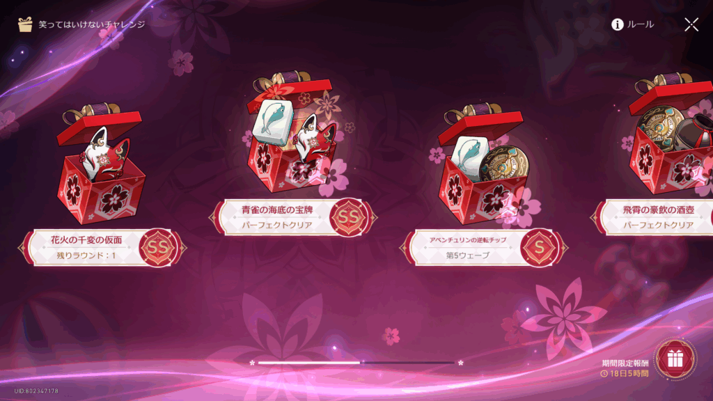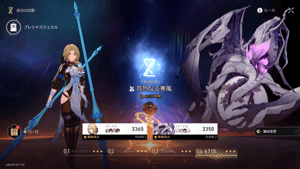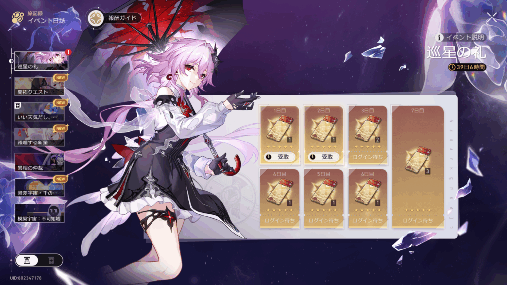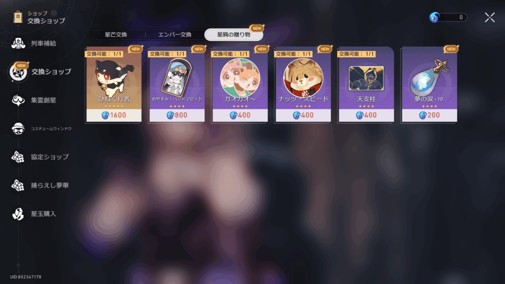 専用ポイントで貰える報酬はまぁしょっぱいラインナップ。戦力に直結するものを並べると義務化してしまうから仕方ないんだが、光円錐の欠片くらい置いてほしかった……。