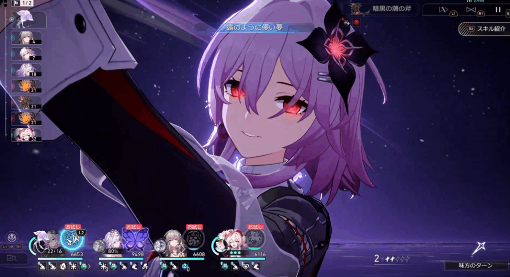 ひとまず長夜月が加入してから本腰入れようと判断して、彼女の加入を待っていたのだが、いざお迎えしてみれば圧倒的な力で捻じ伏せていきやがった……。4~5ラウンドくらい短縮したんじゃなかろうか……。