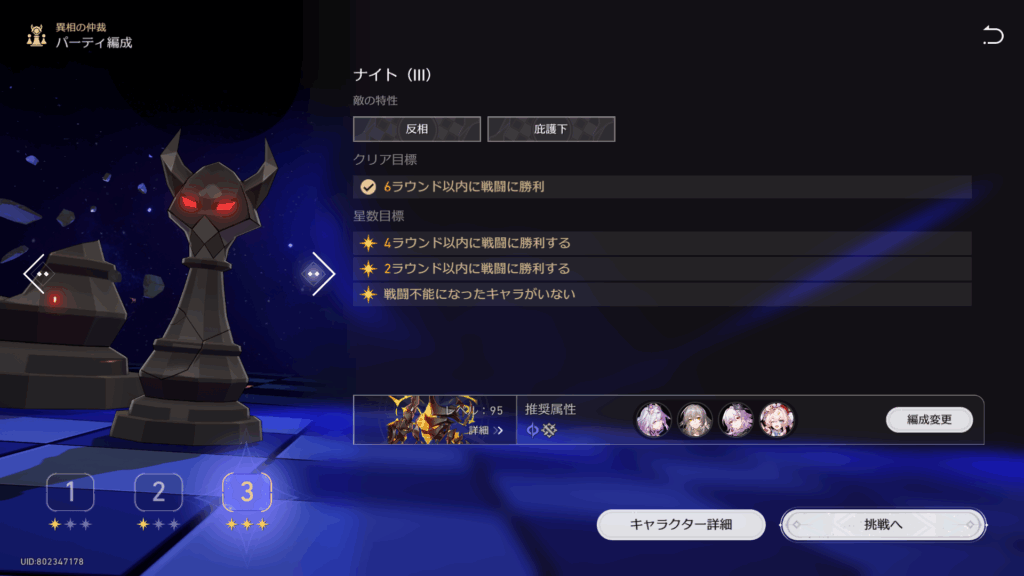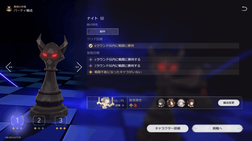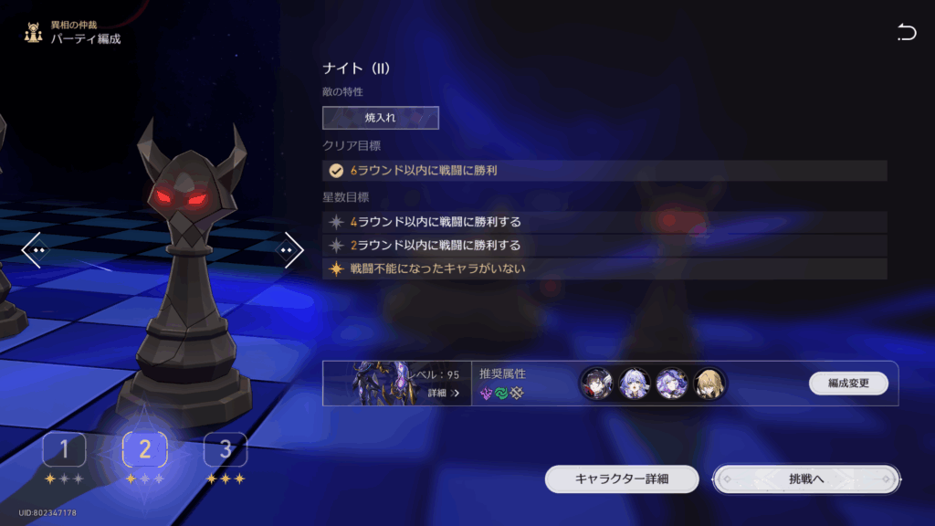 ナイトステージも★3クリアの概念があるが、最低限勝利さえ出来ればクリア扱いしてくれるので良かったわ。