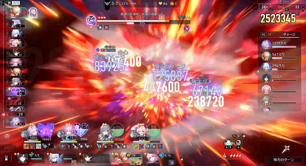 ナイト(Ⅲ)はマダム・ヘルタにお願いした形。よくダブルヘルタ編成を使っていたが、相手が炎弱点持ちなら姫子を採用した方がダメージが伸びましたね。姫子、かなり久し振りに出撃させた気がする。マネウォだと大活躍なのだが。