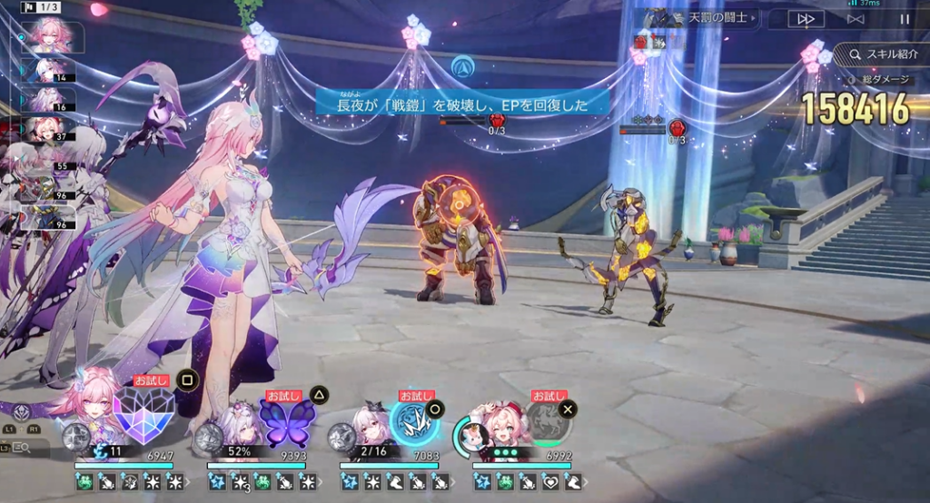 必殺技では黄金裔毎に専用のバフを掛けられるという超豪華仕様。専用画面まで用意されちゃってまぁ……。