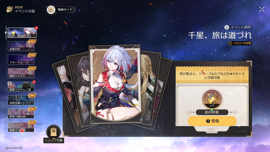 このタイミングで金の伴星を1個配布と共にショップにトパーズが追加。