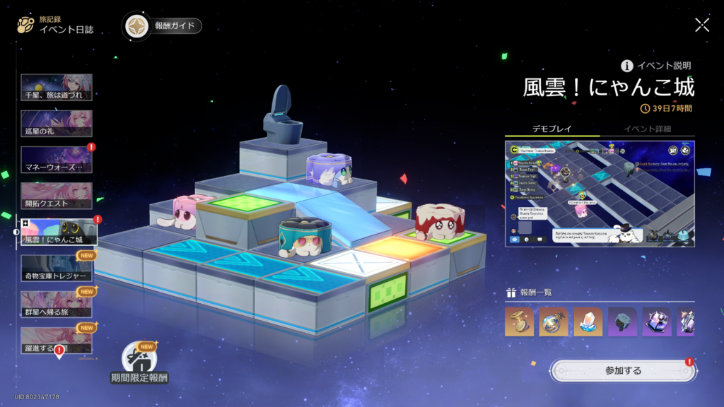 こなすべきお題がアホみたいな分量あるから全部達成したくなっちゃってなぁ……。星玉報酬が無いお題もやっていきたいよね。