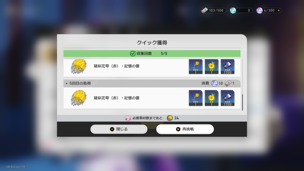 侵蝕トンネル、オーナメント抽出、凝結虚影が連続挑戦可能に。疑似花萼なんて最大24回ぶっ続けでやれるぞ。