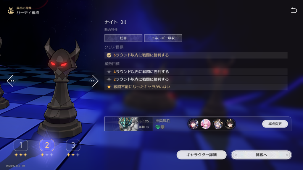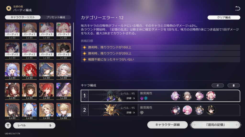 所持していないキャラはお試しキャラを貸してもらえるので無問題。どうせマネウォ限定バフを主力に戦うことになるので通常の育成が不十分でも関係無ぇよ。