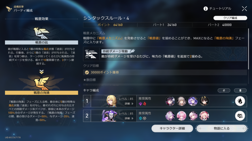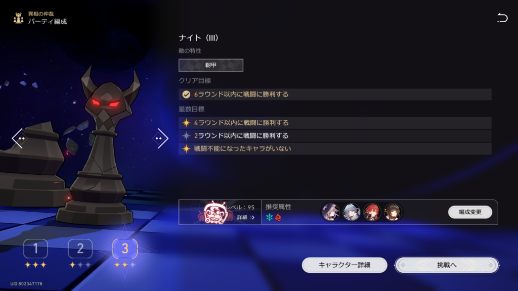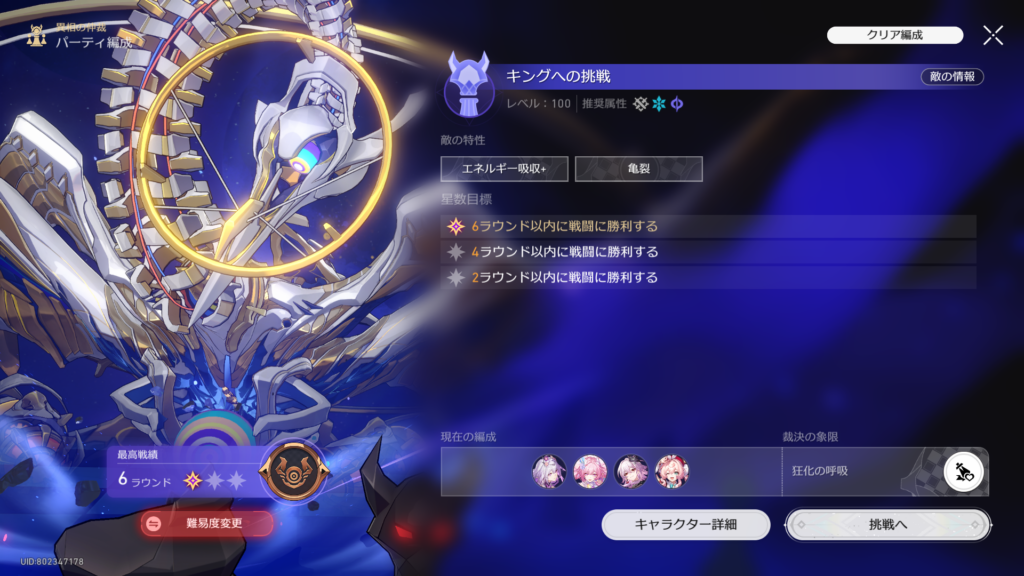 10/27期は長夜月と丹恒・騰荒接待。騰荒の育成が終わってから本格的に取り組んだが、キモい顔のボスを倒すのがあまりにもギリギリであった。あっぶね~。