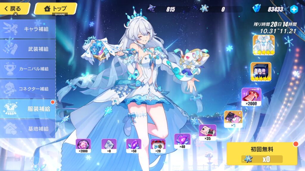 累計消費の報酬選択箱からだったかな?神の鍵、エデンの星を獲得。これで理の律者が戦えるようになるぞ~。