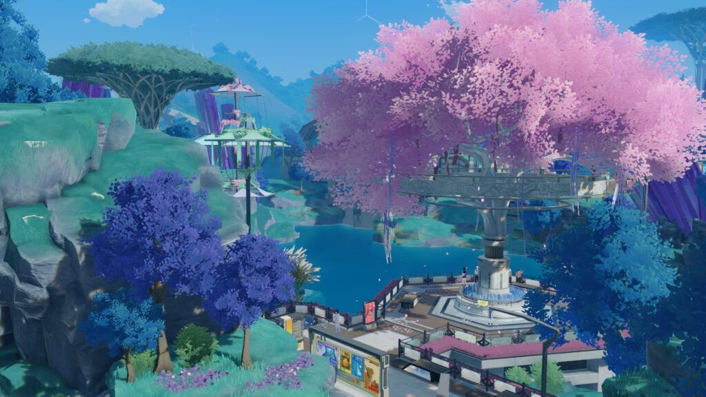 豊土のビジュアルはこれまでに訪れた場所とはまた違った雰囲気で。SFっぽい文明観と自然が融合しているのは瑞木もそうだったが、今回は全体的に明るい景観なのが嬉しい。