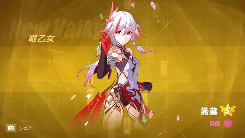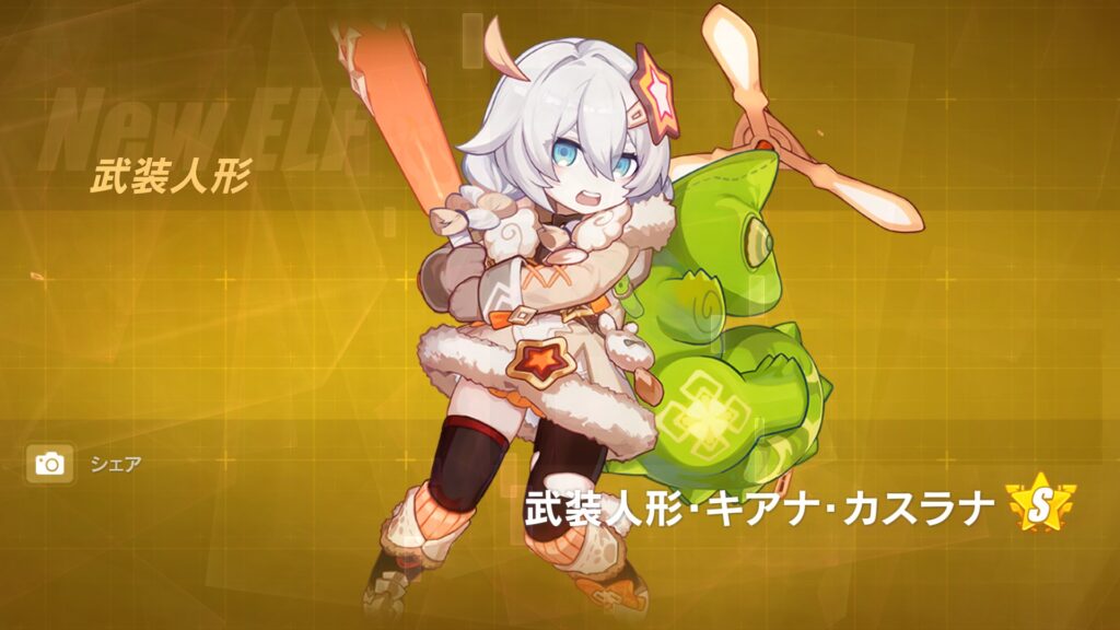 何やらアストラルリング対応装備が後追いで追加されたキャラは新装甲実装フラグとの噂。確かに終焉の律者キアナも人の律者エリシアもそうだな。