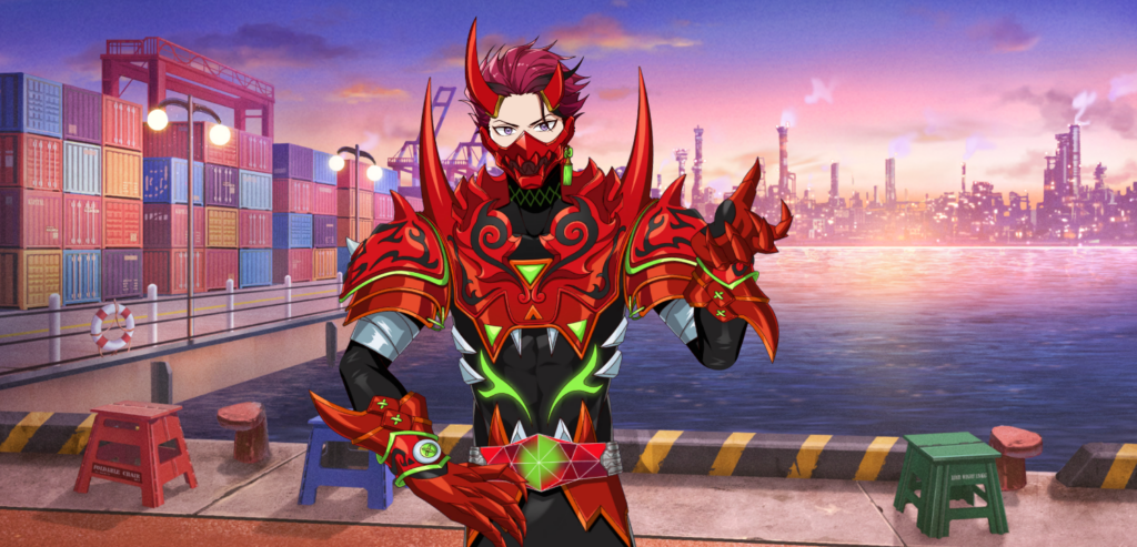 彼が変身する仮面ライダー慈玄はG3モチーフの模様。