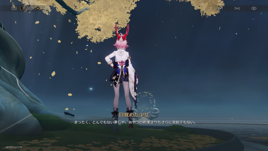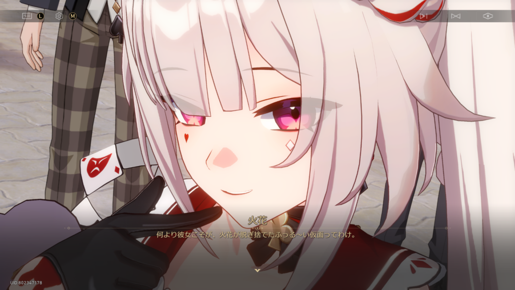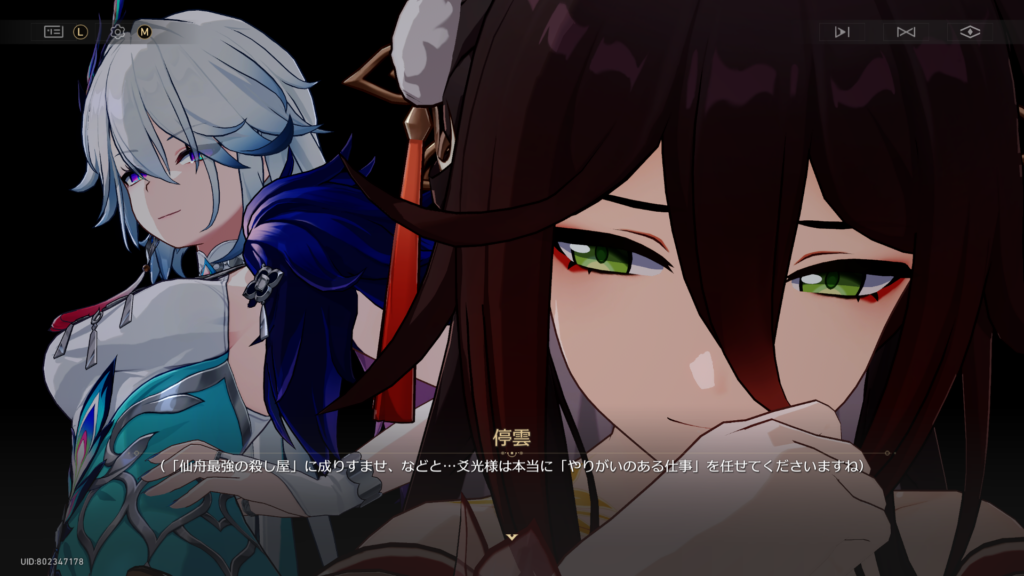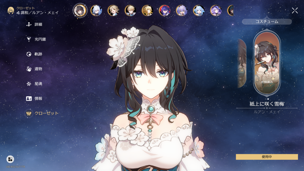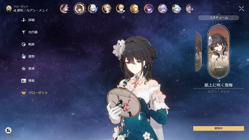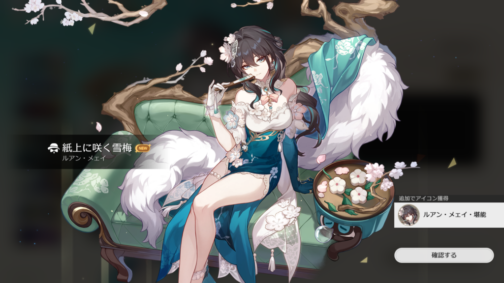 既存コスチュームの色変えと見せかけて、細部のデザインが変わってるマイチェン版なのね。丹恒がくれたものらしく、重たい愛が詰まっている模様。暫くはこれを着っ放しでいこうw