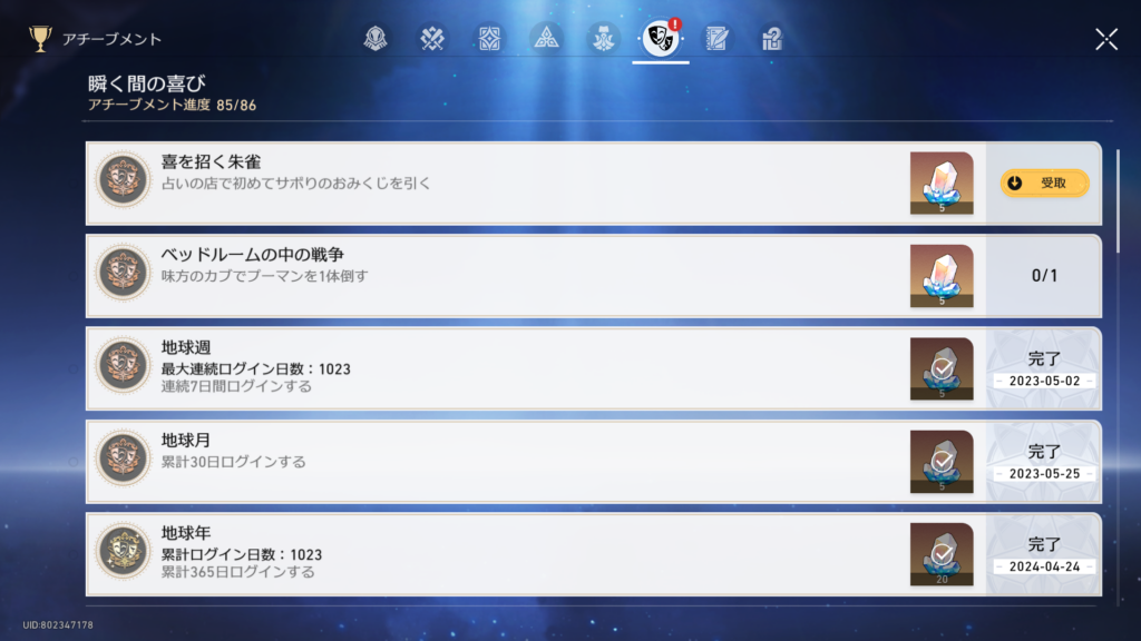 そうそう、アチーブ「喜を招く朱雀」をようやく取れました。バグってんのか?ってくらい出なかったんだよねぇ。ググっても低確率って情報出て来ないしさ……。