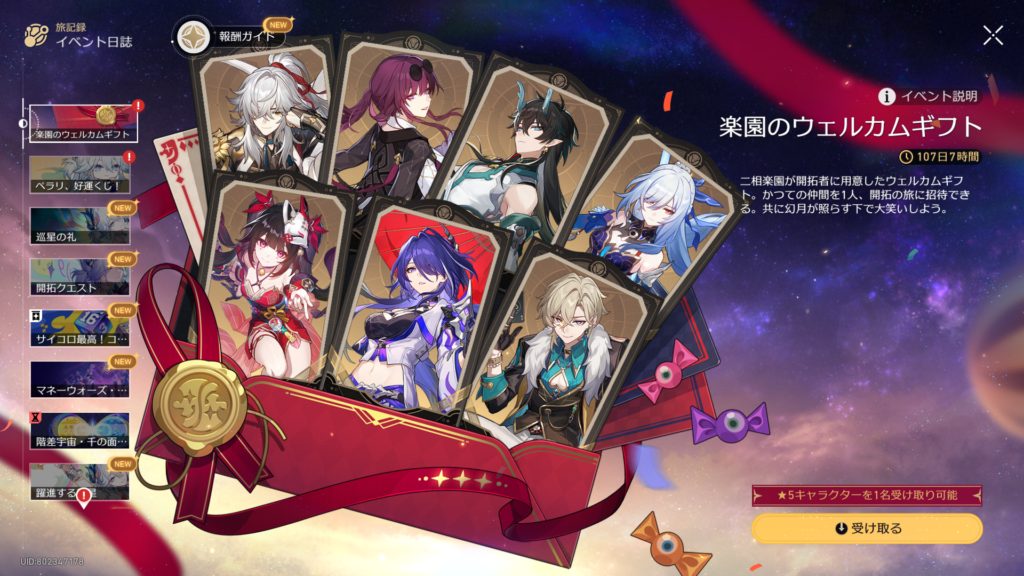 4.0スタートを記念して、限定★5キャラを1人選んで貰える神ボーナス。