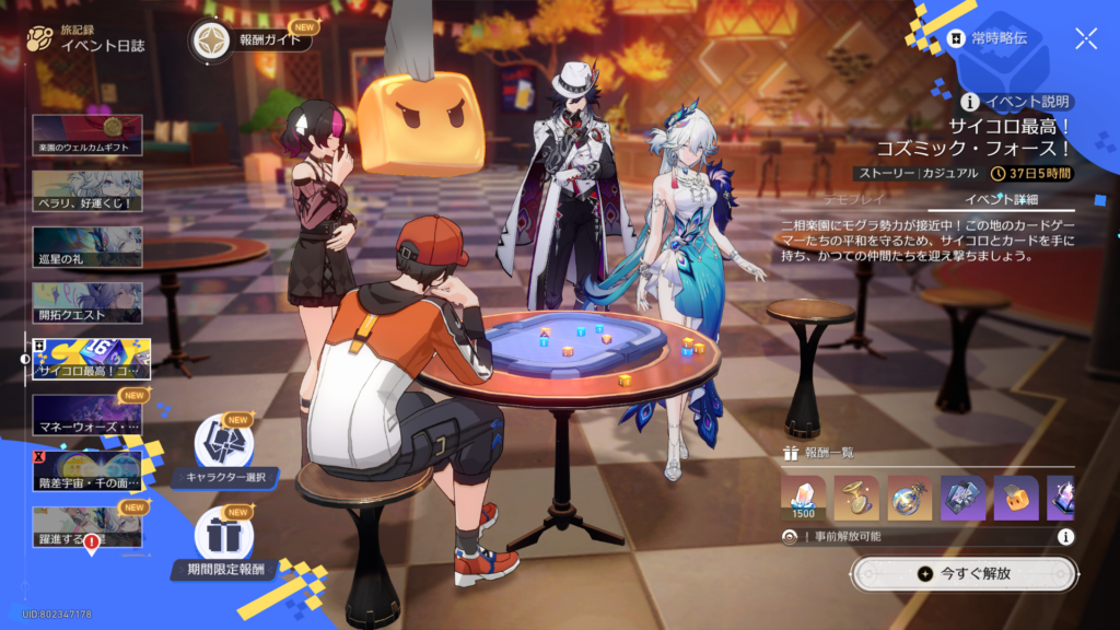 恒常ミニゲーム、カードとサイコロで遊ぶコズミック・フォースが登場ということで、今回はこのミニゲームにフォーカスしたイベントが開催。