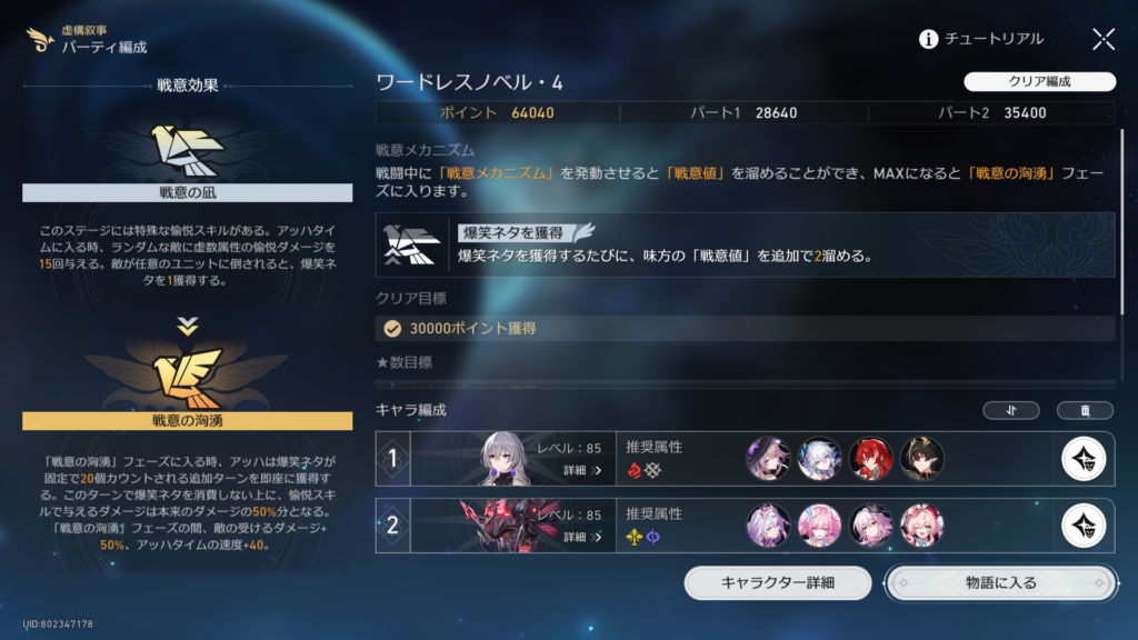 ボスの能力からじゃなくて、用意されているステージバフから逆算して最適パーティーを予想するという変なことをしました。
