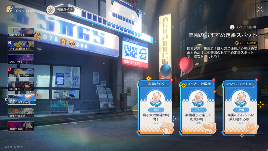 淡々と毎日星玉が貰えるイベント。超低確率で大量の星玉が貰えることもあるらしい。星玉はなんぼあってもいいですからね。