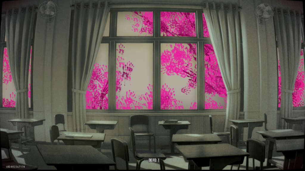 窓の向こうに血塗れの手形がべたべたは怖ぇって……。