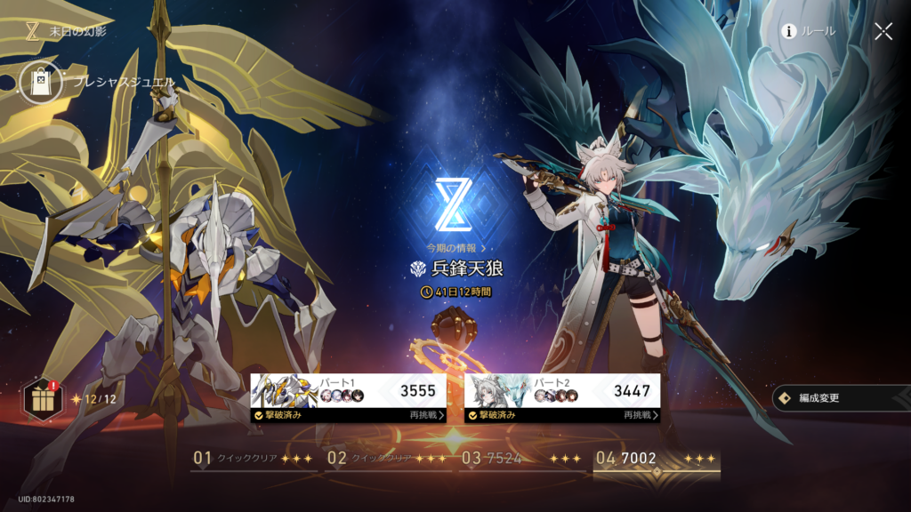 早くも「愉悦」接待でビビったが、初日初見クリア。取り敢えずマダム・ヘルタに爻光を組み合わせてみたら何とかなった。