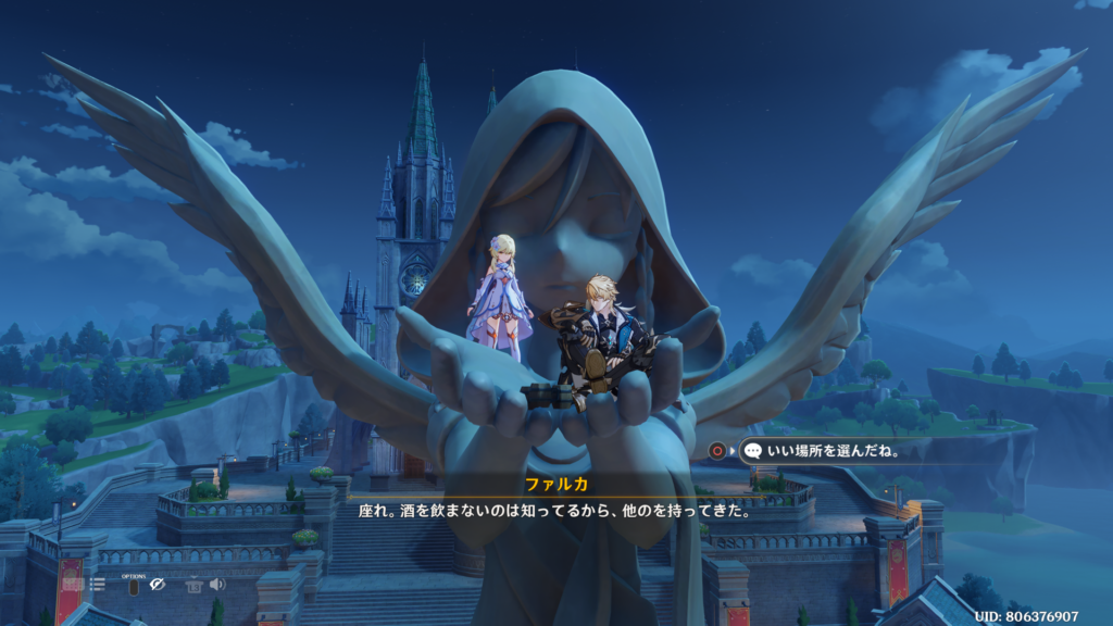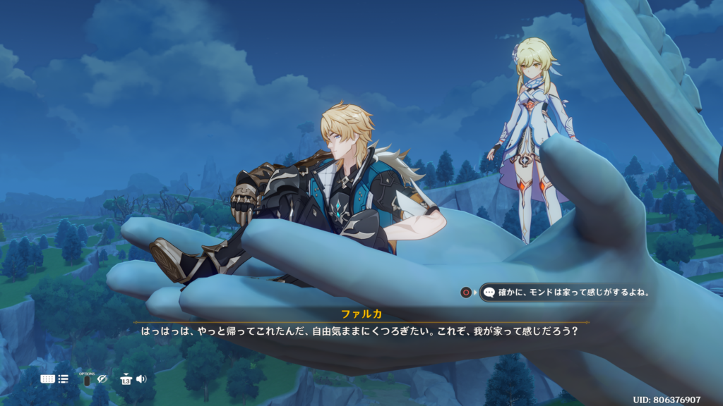 「旅人、旅そのものの意味を、どうか忘れないで。テイワットの鳥も、詩と城も、女皇も、ファデュイと魔物でさえも…みんな、君の旅の一部だ」
