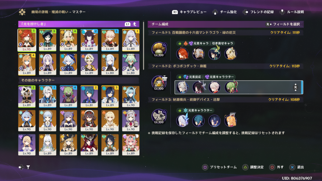 ヌヴィレット、コロンビーナ、万葉、忍でいくしかないんだが、まぁ苦しいのなんの。端末を上手く巻き込みながら本体を攻撃出来た場合の上振れで辛くも勝利。